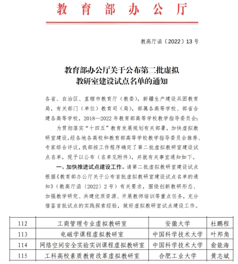 近日,教育部办公厅发布《关于公布第二批虚拟教研室建设试点名单的通知》(教高厅函〔2022〕13 号),由安徽大学牵头,包括正妹av