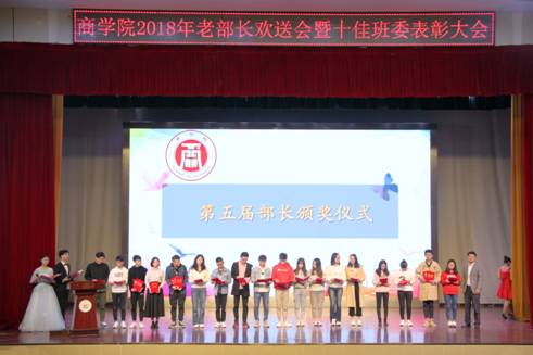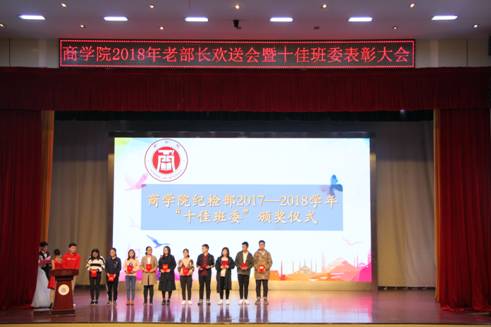 在秀山校区新大学生活动中心举行了2018年院团委学生会优秀学生干部和十佳班委表彰大会。院党委副书记、副院长张虎,院团委书记、副书记,学生会主席,团委学生会全体成员以及各班班长、团支书参加此次大会。