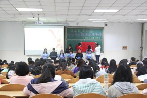 于秀山校区阶教103、104举办第六届“青春华章”配乐诗文朗诵比赛初赛。2018级27个班级全部组队参加,院学生会各部门部长担任比赛评委。