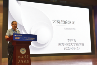 李仲飞教授报告题为“大模型的发展——从原理到实践”。李教授主要从四个方面进行了汇报。第一,介绍了大模型的背景,包括大模型的起源、定义和发展历程,并且把大模型和小模型进行了对比。第二,着重说明了大模型的发展现状,并分析了全球科技巨头的大模型竞赛、AI大模型的技术特点与进展、大模型在企业中的实际运用以及大模型的类别。第三,以国内外研究大模型的公司为例,比如谷歌、英伟达、百度、阿里等,分析大模型的具体应用。第四,指出大模型会带来的社会和伦理问题,并且提出大模型未来发展的若干建议,比如强化跨语言迁移学习、拓展训练数据的范围等等。