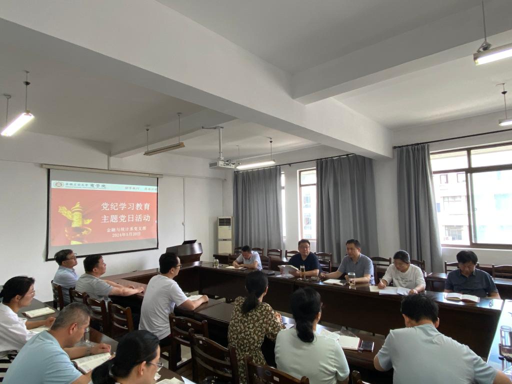 5月20日,院党委书记杜飞参加金融与统计系党支部党纪学习教育主题党日活动,为支部党员、教师讲授了一堂生动的纪律党课。