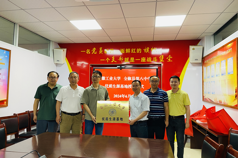 的办学历史、优势学科、特色专业、本科招生以及人才培养等情况,欢迎八中学子踊跃报考安徽工业大学,并且希望不断加强与八中的合作,共探校际协同育人机制。周世军代表学校与全椒县第八中学签署了优质生源基地建设合作协议,并授予了“优质生源基地”牌匾。
