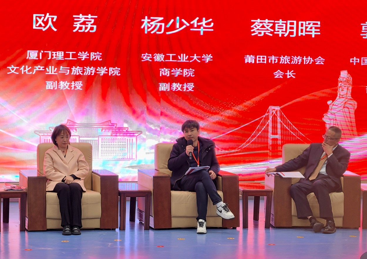 教授、博士生导师黄安民主持,邀请了五位专家学者及企业高管围绕主题发表见解。杨少华深入分析了木兰溪流域作为国家乡村振兴战略重点区域的独特优势,并提出了推动该地区乡村文旅经济高质量发展的路径。他强调,木兰溪流域不仅拥有丰富的自然资源,还承载着深厚的文化底蕴,应该充分挖掘其生态、文化、农业等多重优势,实现文旅产业与当地资源的深度融合。他进一步指出,要建立多元主体参与的共建共享机制,确保乡村文旅发展的内生动力持续释放,从而实现生态保护与经济效益的双赢目标。