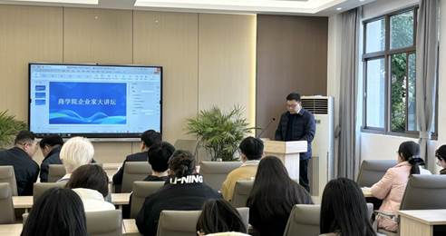 首先,杜飞书记致欢迎辞,强调在数字经济深度重构产业格局的背景下,企业家大讲坛既是学生直面产业前沿、打破课堂理论与商业实践认知壁垒的重要窗口,也是推动商科教育对接行业需求、孵化教学创新的关键纽带。