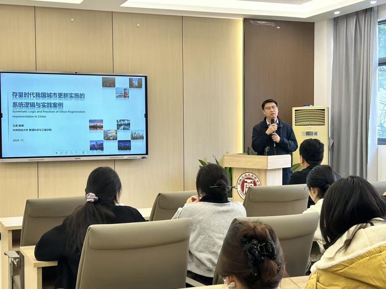 “荟灵经管论坛”,并作题为“存量时代我国城市更新实施的系统逻辑与实践案例”的学术报告。报告由副院长李伟军教授主持。