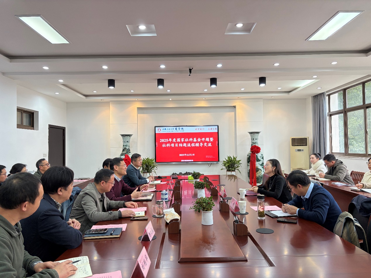 科研处吴金南副处长到会指导。学院领导班子成员、在研国家社科基金和省社科规划项目负责人参会。会议由院长章铁生主持。