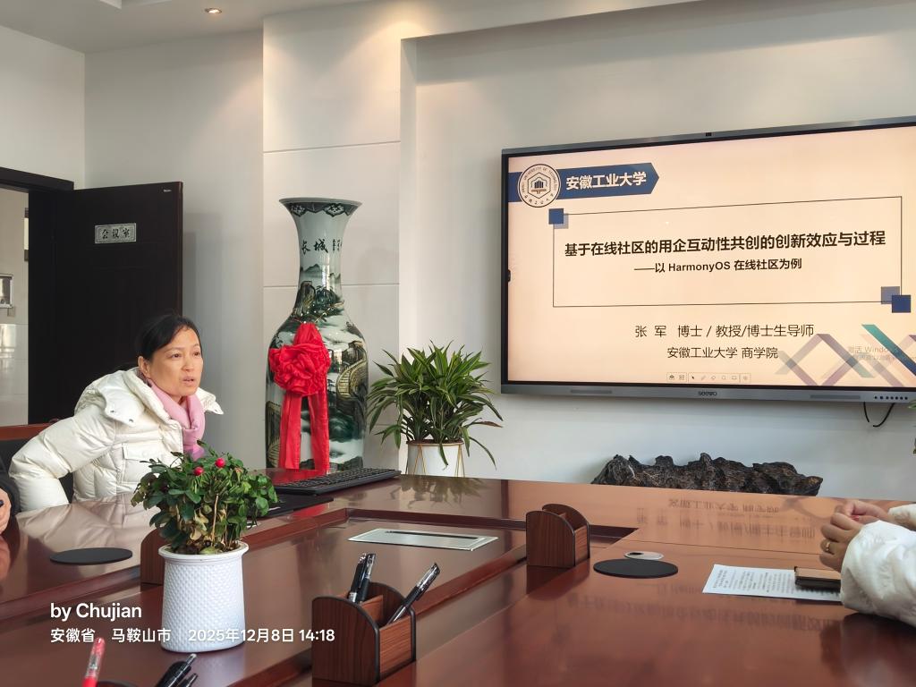 在专题报告环节,正高级实验师齐昕做了题为《Research on the configurational effects of job characteristics on employees’self-efficacy in flexible work》的学术报告,张军教授围绕《基于在线社区的用企互动性共创的创新效应与过程——以HarmonyOS在线社区为例》进行分享。两位专家还结合自身研究经验,就学术论文的构思、理论创新和写作规范进行了深入讲解与讨论,为在场教师与研究生提供了宝贵启示。
