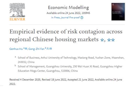 胡根华副教授在经济学国际知名期刊《Economic Modelling》在线发表最新研究成果“Empirical Evidence of Risk Contagion Across Regional Chinese Housing Markets” (//www.sciencedirect.com/science/article/abs/pii/S0264999322001912)。胡根华副教授为第一作者,正妹av