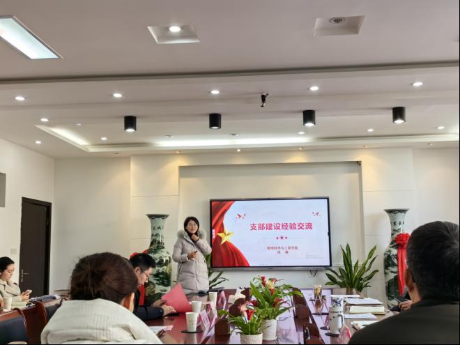 经济系党支部书记韦朕韬就支部特色品牌建设情况、党建与中心工作融合发展等相关后续工作推进情况进行了交流。