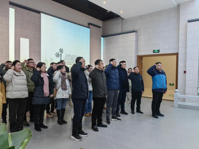 党员教师集体面对鲜红的党旗,重温入党誓词。