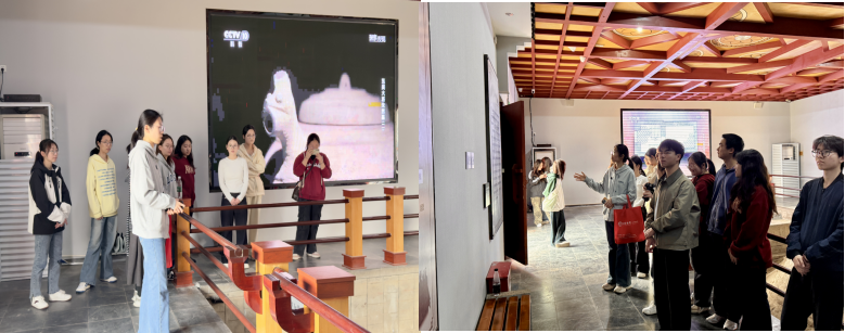步入全国重点文物保护单位朱然家族墓园,大家在入党积极分子孔楚晴的讲解下,通过墓室复原场景、历史文献展陈和多媒体互动体验,触摸历史温度。彩绘“季札挂剑图漆盘”上延陵季子“心许之诺”的诚信品格,“童子对棍图漆盘”中蕴含的崇文尚武精神,特别是朱然墓志铭“勤恪在公,家无余财”的记载,让青年学子深刻体悟到三国文化中“忠勇立身、清廉传世”的价值追求。“这些沉睡千年的文物,实则是中华文明的精神密码。”党员储江南在AR全息展柜前驻足感叹,“朱然将军‘俸禄尽施士卒’的记载,与党的二十大报告中‘始终保持同人民群众的血肉联系’的要求,本质上都是对为民初心的坚守。”