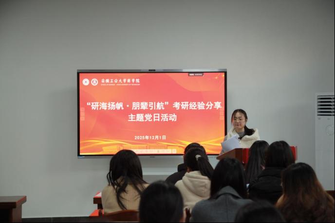 学生第一党支部与第十一党支部联合举办“研途领航·青春同行”主题党日活动。活动旨在通过跨支部、跨年级的经验分享与交流,帮助本科生党员和入党积极分子明确发展方向,提升核心竞争力,进一步发挥学生党支部在思想政治引领和成长服务中的作用。