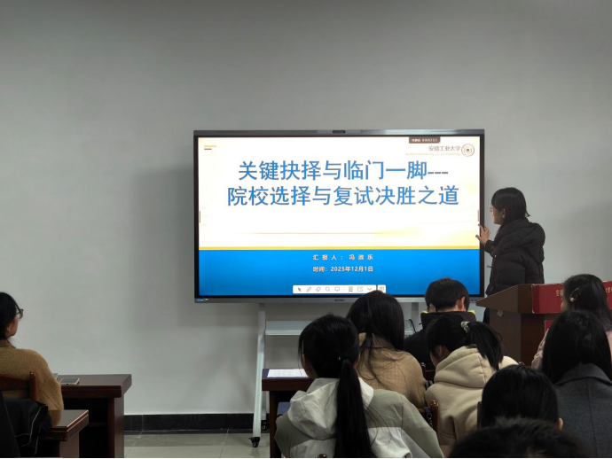活动聚焦学生普遍关心的升学与就业问题,三位研究生同学分别围绕“院校选择与复试准备”“科学备考与心态调整”“研究生阶段的科研与成长”三大模块展开分享。他们结合自身经历,从目标定位、复习策略、时间管理、资源获取到复试技巧与科研入门,进行了系统而细致的讲解,为在场同学提供了兼具实用性与启发性的经验参考。