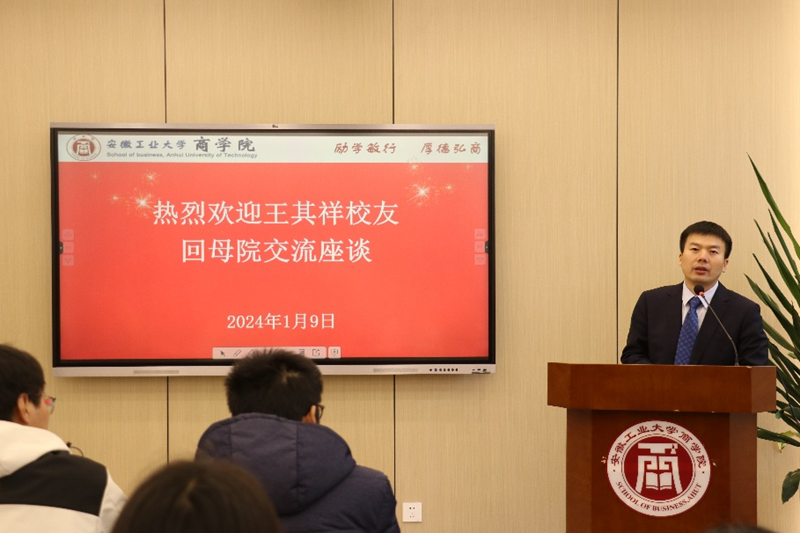 蒋磊对王其祥重回母院表示热烈欢迎,并对校友心系母院、关心支持母院人才培养表示感谢。他希望参会的学生干部代表要认真听、认真记,要积极学习校友的优秀品质和高尚情怀,锚定目标、努力拼搏、奋力前行,实现人生价值。