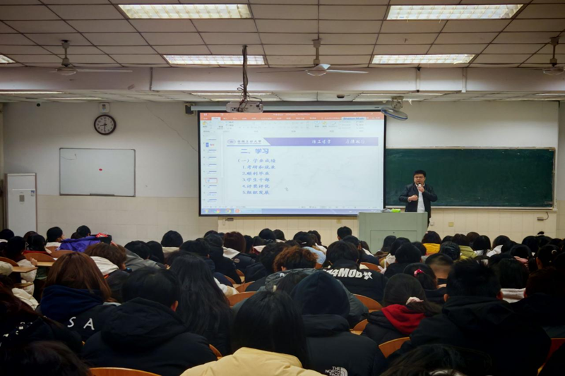 首先,王伟伟指出,新生应遵守学校的规章制度并着重强调校园安全及宿舍安全问题。她特别提醒同学们应规范使用电器,预防火灾,谨防诈骗,合理请假,不留宿校外等注意事项。此外,王伟伟还就学生思想学习方面进行指导,对学生学习安排提出有效建议,并寄予殷切期望。蒋磊就安全、学习以及实践三个方面进行了深入的介绍和交流。他强调安全的重要性,分别指出信息畅通、文明聚餐、文明恋爱、安全防范等四个要点,提高了学生的安全意识。在谈到学习方面时,蒋磊指出学业成绩的重要性,同时鼓励学生们要敢于思考,努力学习,为学科竞赛与创新打下坚实基础。会议最后强调了社会工作和实践的重要性,积极启发学生对未来职业的思考,并鼓励学生积极参与社会服务。