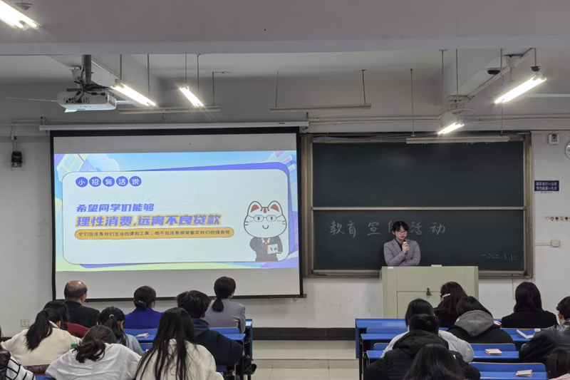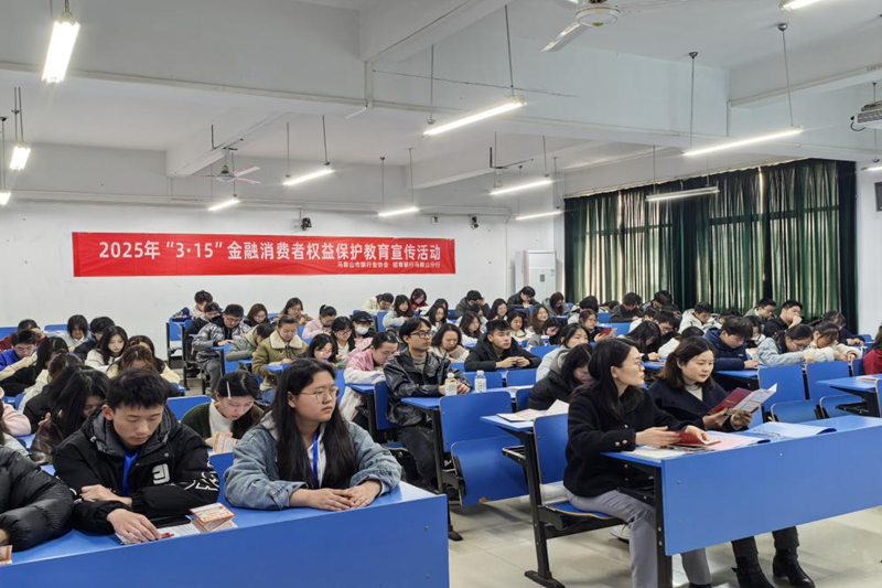 在教D205教室成功举办了以金融知识普及和消费者权益保护为主题的系列讲座。马鞍山市银行业协会副会长薛晓华、招商银行综合管理部总经理王蔷薇应邀做宣讲,各级学生代表参加本次讲座。