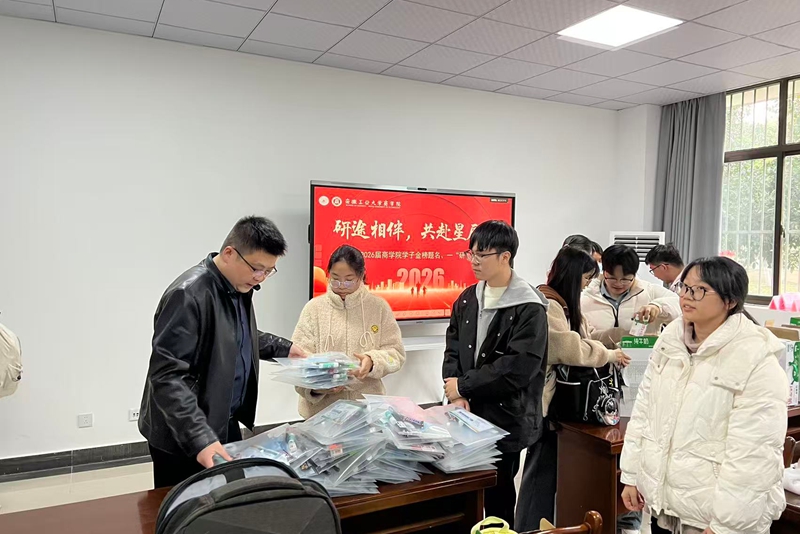 随后,蒋磊和毕业班老师们为学子分发精心筹备的“考研慰问包”,每份慰问包都承载着学院对学生们“金榜题名、旗开得胜”的美好祝愿,让学子深切感受到关怀与温暖。